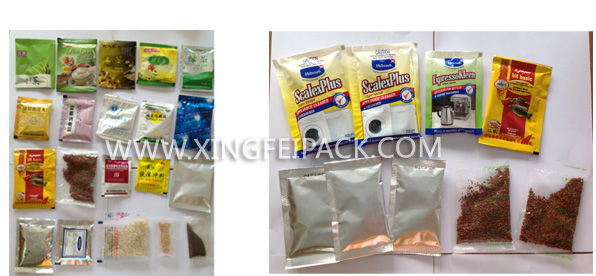適用于食品,醫藥,化工產品中的松散,無粘性,細小顆粒狀,物料的自動包裝,如:湯料,沖劑,干燥劑,味精,白糖,麥片等。