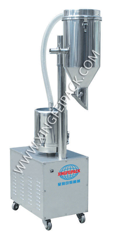 真空上料機由真空泵〔無油、無水〕,不銹鋼吸料咀、輸送軟管、布袋過濾器〔或316L不銹鋼過濾器〕,振打清理器〔或壓縮空氣反吹裝置〕、真空料斗和料位自動控制裝置等組成,整套系統設計合理、制造精美。真空加料機用于包裝機、壓片機加料和用于混合機加料時,配置略有不同,用戶在訂貨時需作出說明