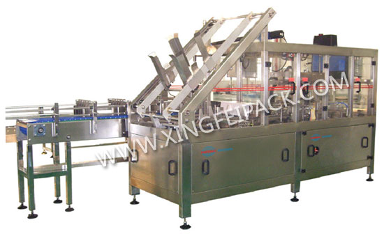本機由包裝主機和進料輸送部分組成三合一包裝機,能自動完成產品輸送,紙箱成型,產品裝入,噴膠,粘合,成品輸出。廣泛應用于食品,日化等行業,如奶粉,啤酒,飲料,方便面,洗滌劑,盒裝洗衣粉,肥皂等。
